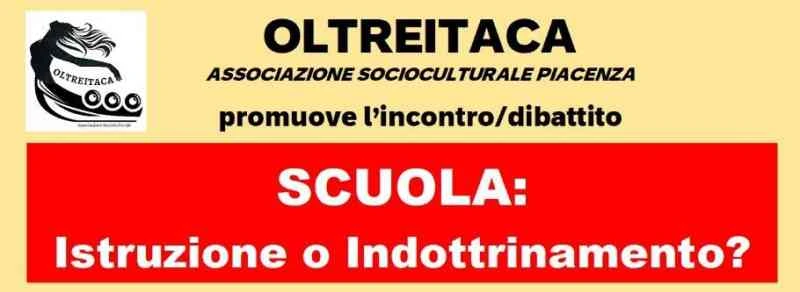 Oltreitaca la scuola al centro nel dibattito-incontro venerdi 17 novembre a Piacenza a Palazzo Ghizzoni in via Roma 12 alle ore 21. Scuola sviluppo saperi e arricchimento morale o incultura, manipolazione, repressione e costrizione? Oltre alla Presidente dell’Associazione socioculturale Oltreitaca Avvocato Giovanna Quattrini saranno presenti il Professor Maurizio Dossena e la Professoressa Michela Pisù che approfondiranno il tema. L’evento è promosso dall’Ass. Oltreitaca in collaborazione con il Comitato 15 ottobre, Associazione Nel Nuovo Mondo e Spazio Tesla.