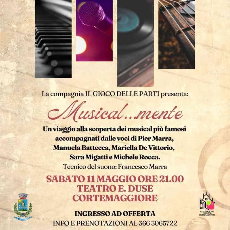 Il secondo appuntamento della rassegna oMaggio al teatro al Duse di Cortemaggiore vede il gradito ritorno di Pier Marra e la sua compagnia sulla scena magiostrina sabato 11 maggio alle ore 21.00. Insieme a lui si esibiranno Manuela Battecca, Mariella De Vittorio, Sara Migatti e Michele Rocca, che con le loro voci faranno omaggio ai musical più famosi attraverso le canzoni che più li hanno resi celebri.