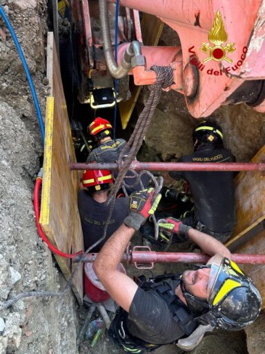L’operaio è precipitato all’interno della voragine. Sul posto sono intervenuti i vigili del fuoco che ancora in questi minuti stanno cercando di liberare l’uomo.