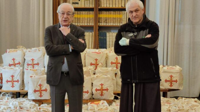 Le borse, contenenti olio, latte a lunga conservazione, pasta, prodotti in scatola e tanto altro saranno date alle famiglie messe in difficoltà economica dalla lunga emergenza sanitaria, a cui si sono aggiunte le conseguenze della guerra in Ucraina. «Sono sempre più numerose – ha sottolineato padre Ballati, che ha ringraziato la Delegazione per il generoso gesto – le persone che al sabato mattina si rivolgono al Convento perché faticano ad arrivare a fine mese e a mettere a tavola un pasto. Sabato prossimo consegneremo queste preziose borse, che daranno un po’ di sollievo a chi si trova in difficoltà».