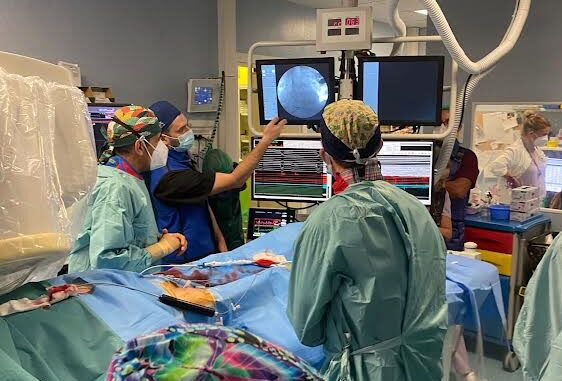 Grazie al contributo degli emodinamisti Guido Rusticali e Alberto Monello, dell’elettrofisiologo Luca Rossi e dell’anestesista Ruggero Massimo Corso, direttore ad interim di Rianimazione e terapia intensiva, è stata portata a termine con successo una procedura complessa di ablazione di tachicardia ventricolare, con paziente in supporto meccanico con dispositivo intra cardiaco Inpella a supporto del circolo.