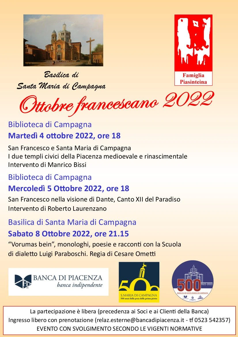 Ottobre Francescano 2022 a cura della Famiglia Piasinteina.