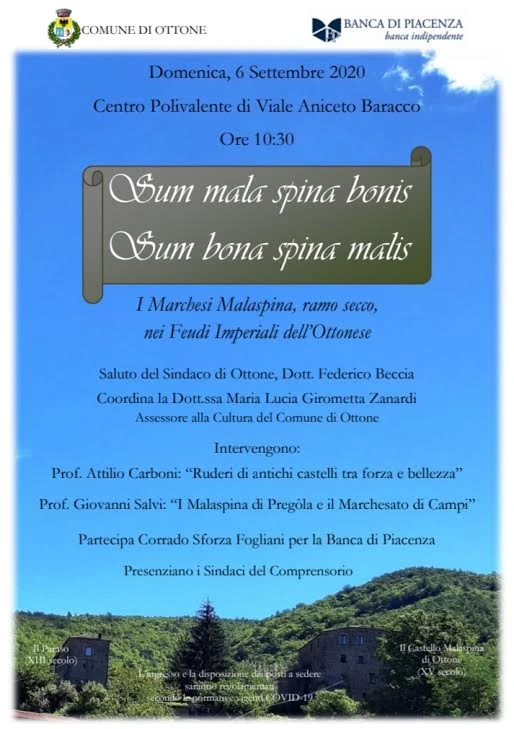 Il 6 settembre a Ottone “Sum mala spina bonis. Sum bona spina malis”.