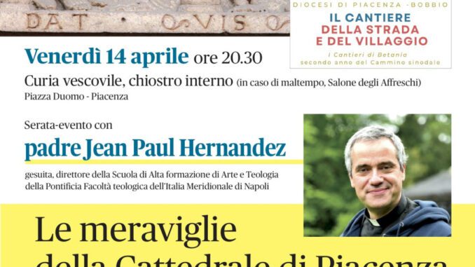 Nel cortile del Palazzo vescovile (in caso di maltempo nella Sala degli Affreschi della Curia vescovile) il sacerdote interverrà sul tema “Le meraviglie della Cattedrale di Piacenza. La chiesa come porta e come grembo”.