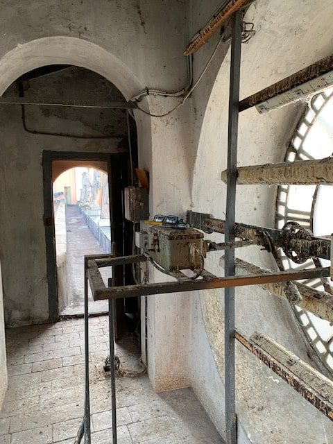 Oltre al trattamento di raschiatura, pulizia e verniciatura del blocco telaio in ghisa, si è provveduto alla sostituzione completa dell’intero quadrante, del ruotismo di minuteria e delle lancette; nonché all’installazione di un doppio albero in acciaio e di un nuovo sistema di illuminazione.