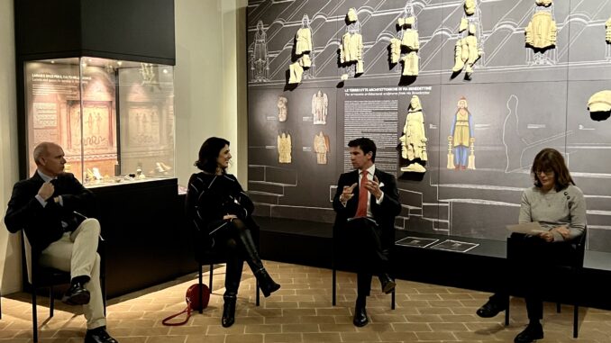 Si è svolta stamani, venerdì 3 dicembre a Palazzo Farnese, la presentazione del ciclo di conferenze gratuite “Viaggio nel tempo con l’archeologia”, al quale prenderanno parte i direttori dei principali musei archeologici italiani. A illustrare i dettagli dell’iniziativa, che rientra nell’ambito di un progetto di valorizzazione dello scavo archeologico realizzato durante i lavori di recupero della ex chiesa del Carmine, sono intervenuti l’assessore alla Cultura Jonathan Papamarenghi, la direttrice dei Musei Civici Antonella Gigli, l’architetto Maria Luisa Laddago, nuova soprintendente all’Archeologia, Belle Arti e Paesaggio delle Province di Parma e Piacenza e il funzionario della Soprintendenza per il patrimonio archeologico, Marco Podini.