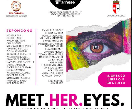 Lo Spazio Mostre di Palazzo Farnese ospiterà dal 17 dicembre all’8 gennaio prossimi, con ingresso libero e gratuito negli orari di apertura dei Musei Civici, la mostra “Meet.Her.Eyes”, promossa dal Collettivo FotoArte Farnese in collaborazione con l’associazione Sine Tempore e con il Comune di Piacenza.