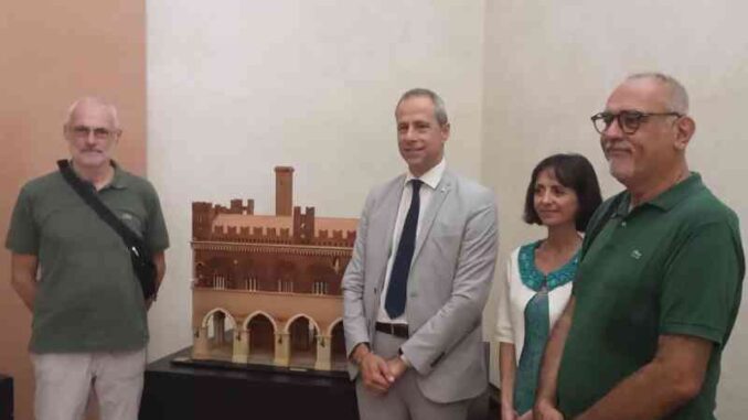 La conferenza stampa tenutasi oggi a Palazzo Farnese è stata occasione anche per presentare la collocazione definitiva del modello ligneo di Palazzo Gotico donato dall’autore, Ginetto Savi, ai Musei Civici: lo si potrà ammirare nella stessa sala dove già è esposto il modello ligneo di Palazzo Farnese.