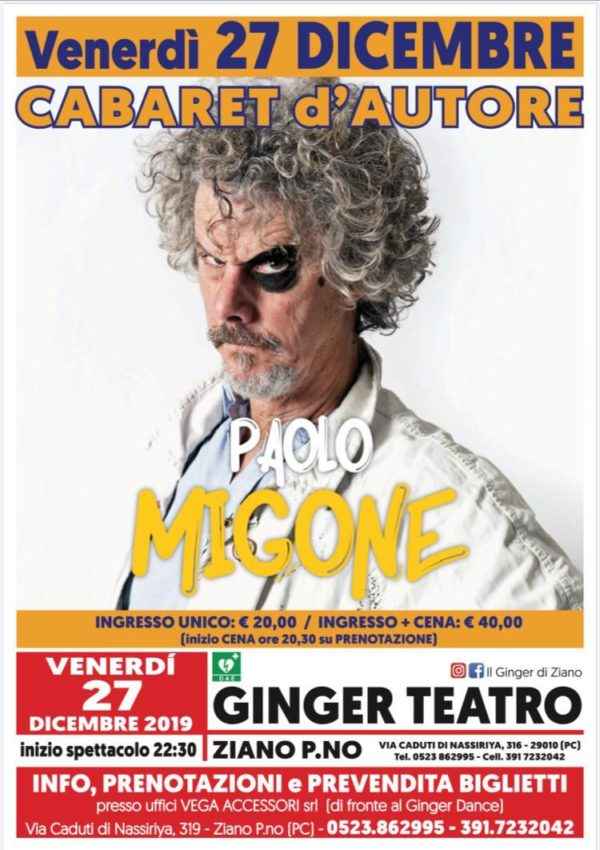Paolo Migone al Teatro Ginger di Ziano venerdì 27 dicembre. Il noto cabarettista porta nel piacentino il suo Cabaret d’Autore, visto e apprezzato durante le fortunate stagioni di Zelig.