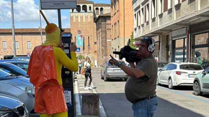 Il tema parcheggi non smette di far discutere. Dopo lo scoppio della bomba legata alla fideiussione falsa, oggi è approdato a Piacenza anche il noto Capitan Ventosa, storico inviato del tg satirico Striscia la Notizia. Capitan Ventosa, alias Fabrizio Fontana, ha raggiunto la nostra città per documentare i disagi legati ai parchimetri. Due in particolare.