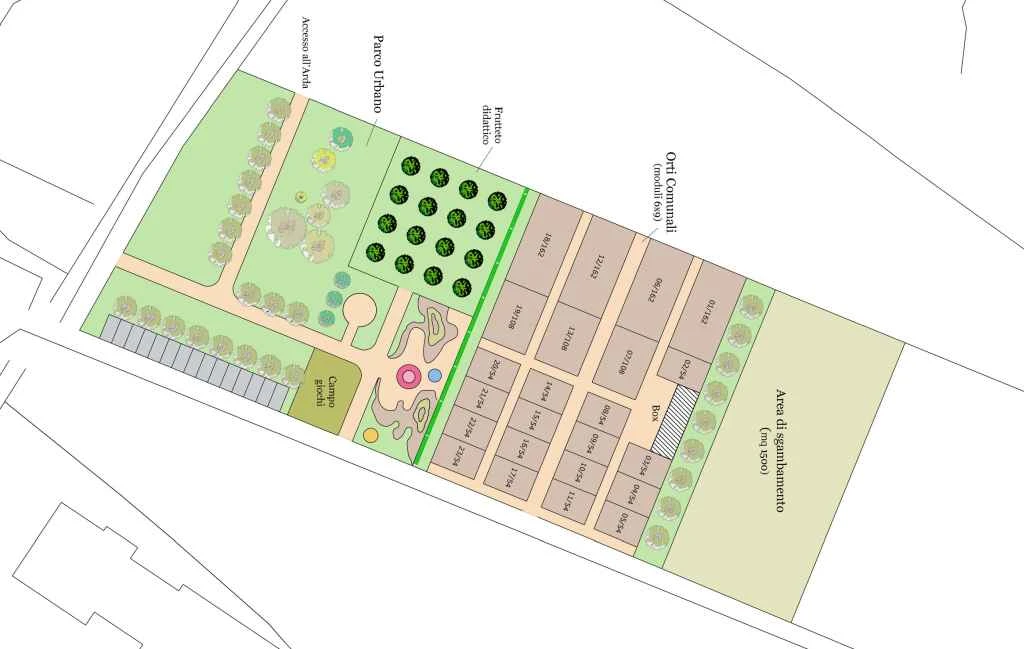 Agli orti, sarà affiancata un’area per un frutteto didattico, un campo giochi, un’area sgambamento cani e uno spazio attrezzato con l’accesso al Torrente Arda. I dati Istat del 2017 indicano l’Emilia Romagna come capofila del fenomeno degli “urban farmers”. La nostra città vuole contribuire ad incrementare il patrimonio verde dedicato a chi vuole impegnarsi in queste attività.