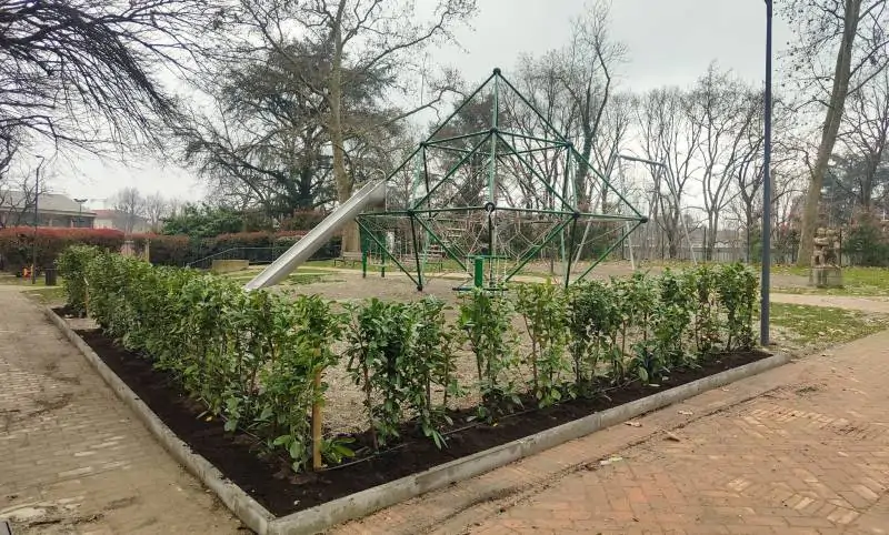 E’ stato inoltre piantumato un nuovo albero in una buca di impianto preesistente e si è provveduto alla sistemazione di tavoli e sedie sotto il gazebo, coperto con un telo ombreggiante.