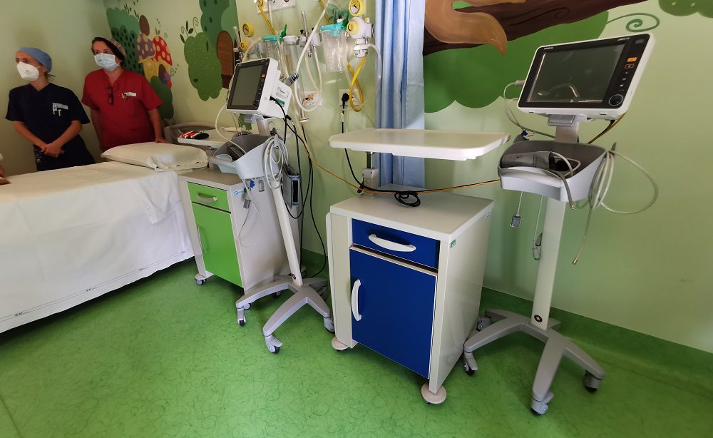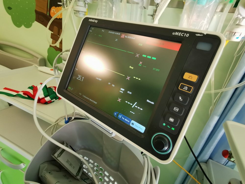 “Abbiamo potuto installare – spiega il primario Giacomo Biasucci – otto monitor in quattro stanze. Il sistema permette al personale sanitario di visualizzare costantemente i parametri vitali dei piccoli pazienti e poterli controllare tutti insieme su un monitor dedicato nella guardiola infermieristica”.