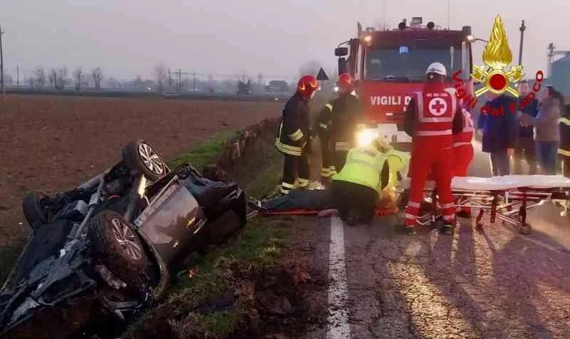 Dopo essere uscito di strada si è ribaltato all’interno di un canale a fianco della carreggiata.