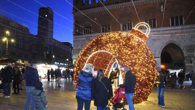 Alcuni ragazzini lanciano un petardo, prende fuoco la grande palla di Natale rossa che campeggia in piazza Cavalli. I fatti sono accaduti questo pomeriggio. Prima il boato, poi le fiamme che hanno iniziato ad avvolgere la palla rossa posizionata all’ombra di palazzo Gotico.