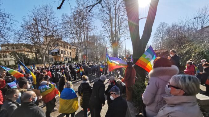 “La Nato deve restarne fuori, non deve intervenire”, chiosa uno degli organizzatori, italiano, durante il comizio. Parole che infiammano una donna ucraina presente al sit-in: “Ma cosa dite, se non fosse per la Nato non ci sarebbe più nessuno nel nostro Paese. Sono stanca di sentire tutte queste banalità e questa retorica”.