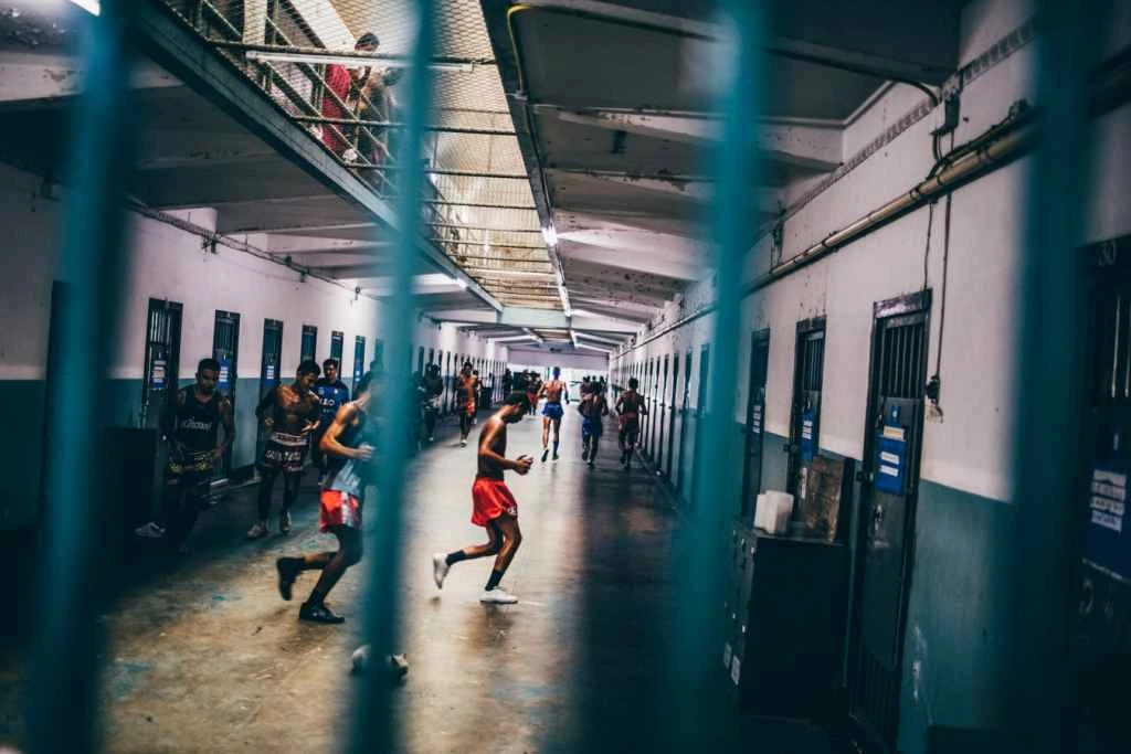 Inmates exercise outside of their cells at Klong Prem prison in Bangkok, Thailand. The inmates are part of a program that pits prisoners against foreign Muay Thai fighters for a chance of reduced sentencing or early release.
