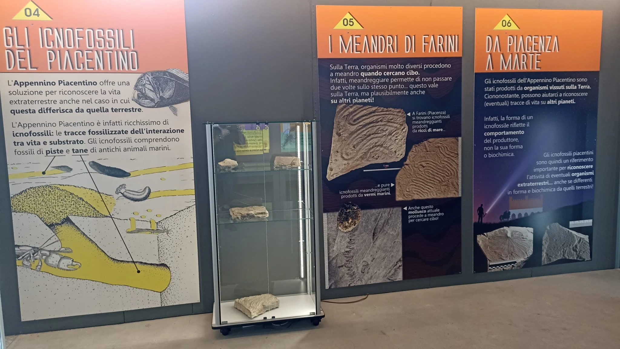 La mostra, curata dal Dr.Andrea Baucon professore di paleoicnologia presso l’Università di Genova con la collaborazione della Società Piacentina di Scienze Naturali, nelle persone della Dr. Annarita Volpi e Girolamo Lo Russo, guiderà il visitatore attraverso uno straordinario percorso che partendo da ricerche scientifiche realizzate nel territorio piacentino lo porterà fino su Marte.
