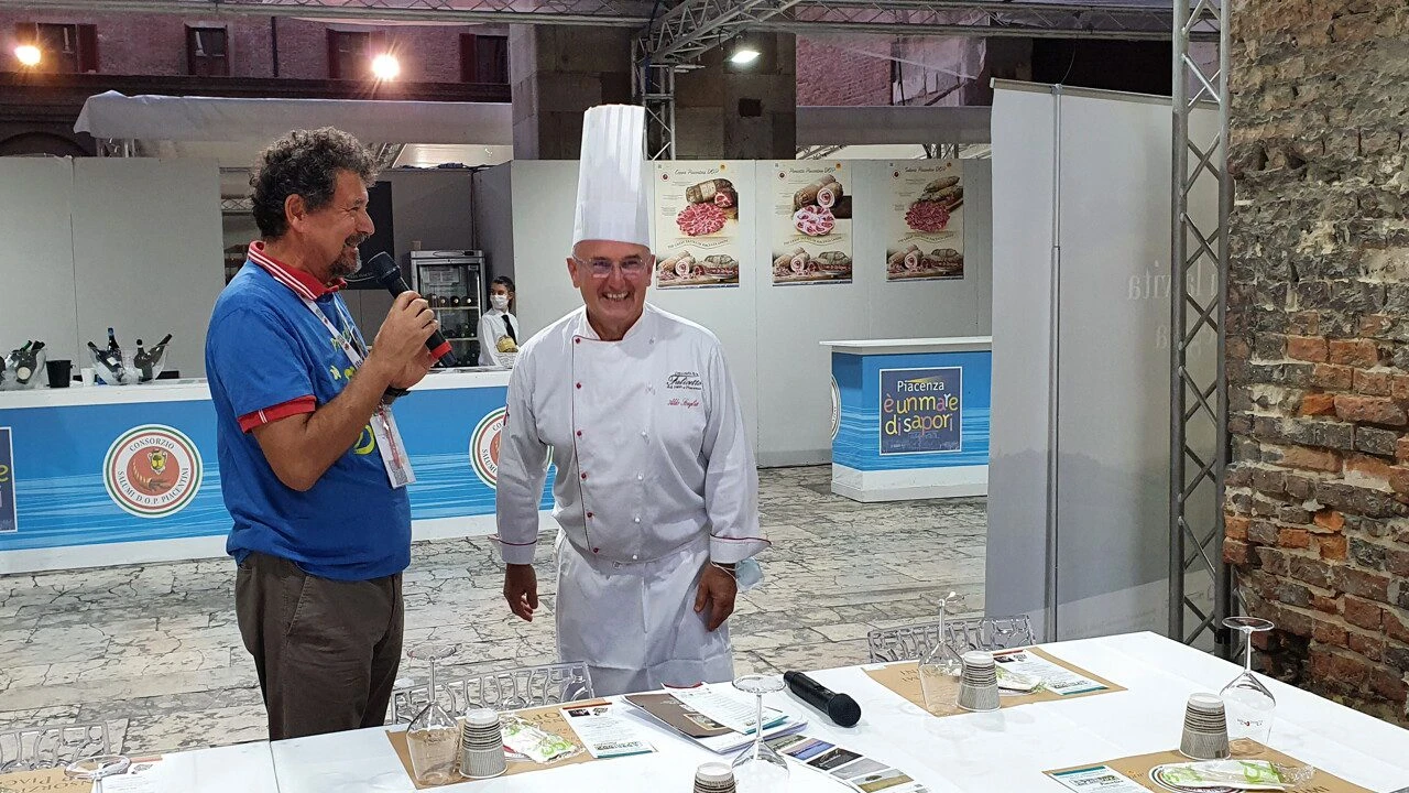 La cena di gala che ha affollato i portici di Palazzo Gotico ha visto come protagonisti i migliori salumi DOP dell’Emilia-Romagna, serviti dai giovani dell’Istituto Alberghiero Marcora di Piacenza e un inedito show-cooking a cura di Emilio Barbieri, chef stellato del ristorante “Strada Facendo” di Modena affiancato da Carla Brigliadori, responsabile della scuola di cucina di Casa Artusi.
