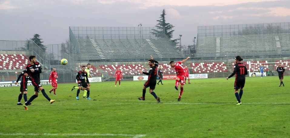 35′ Sylla scatenato, domina fisicamente in area di rigore avversaria e appoggia a Paponi, che viene contrastato da un difensore al momento del tiro