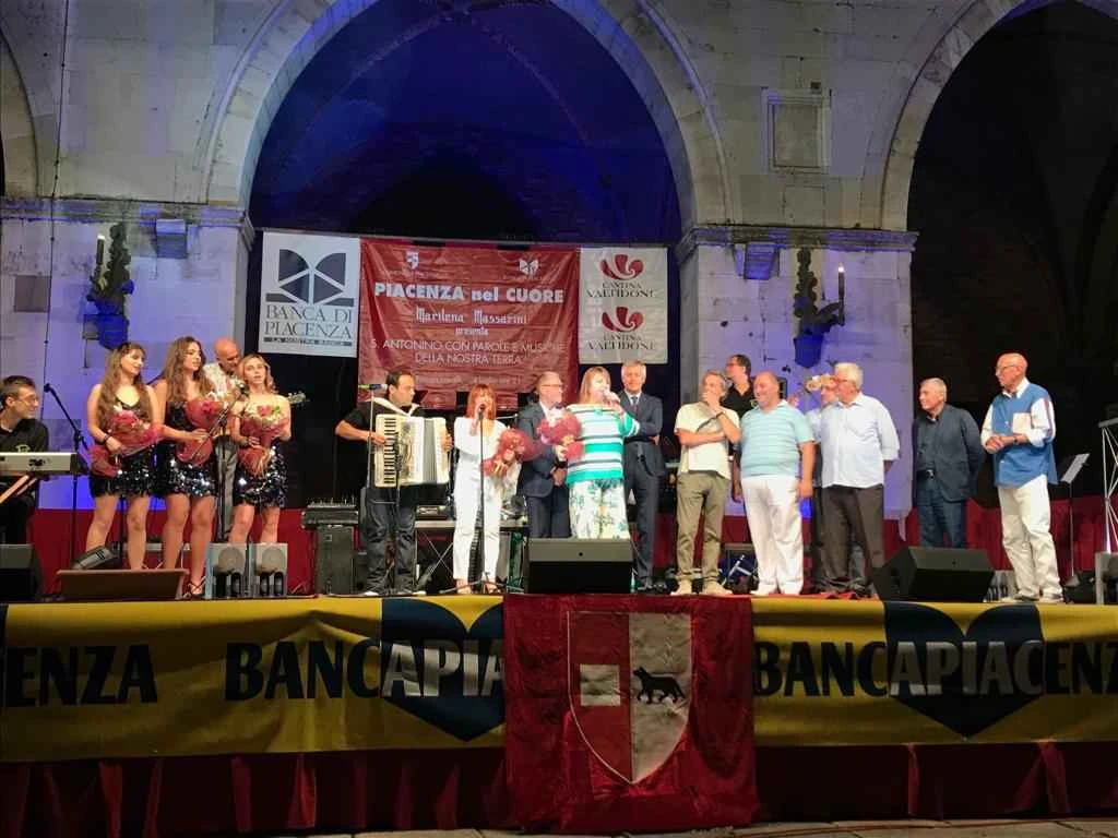 Grande successo di pubblico per “Piacenza nel Cuore”, la rassegna della canzone dialettale che conclude in Piazza Cavalli i festeggiamenti per il 4 luglio; occasione di punta per il Comune che ha concesso la collaborazione insieme alla Banca di Piacenza, Cantina Val Tidone e la Cooperativa San Martino.