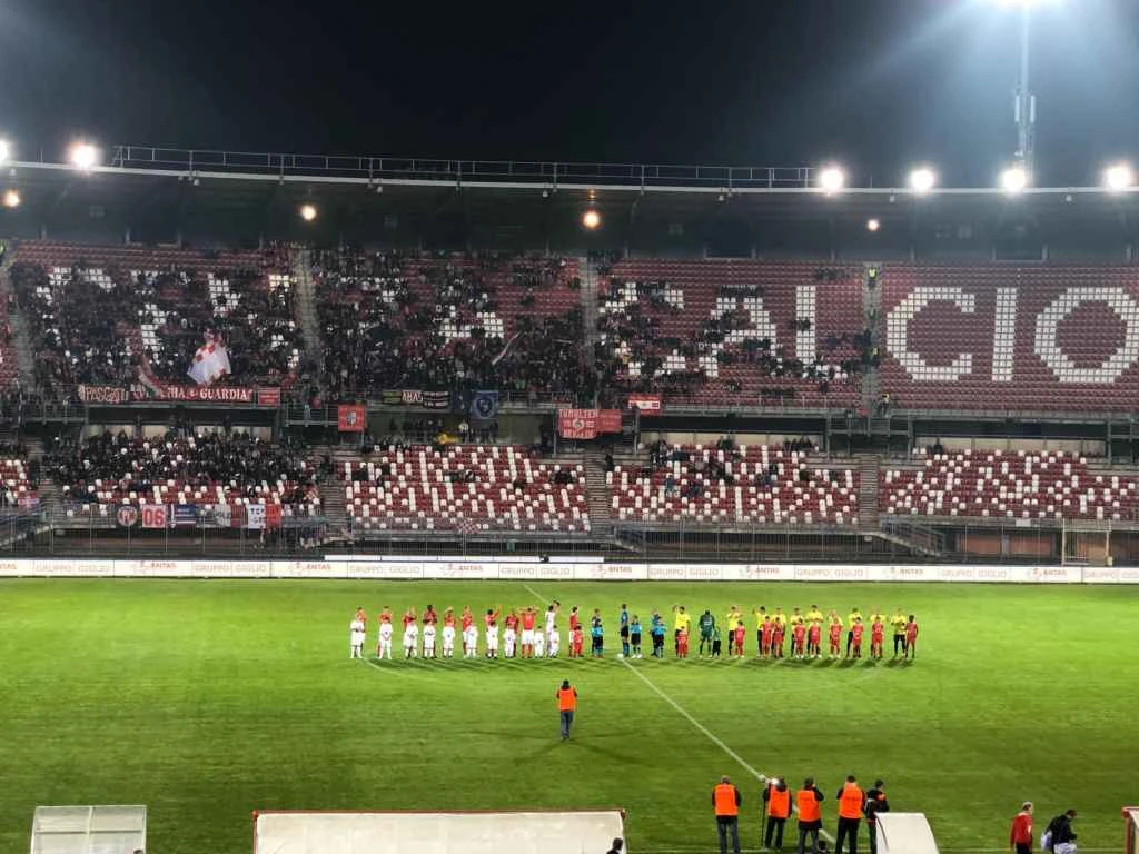 67′ Punizione per il Piacenza. Sette metri fuori dall’area, sul versante di sinistra. Batte di nuovo Sestu che la mette sul secondo palo: Pergreffi colpisce di testa, palla fuori di pochissimo.