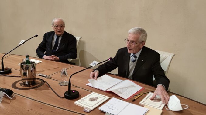Piacenza Primogenita (prima ad aderire, nel 1848, al Regno di Sardegna con il plebiscito proclamato il 10 maggio nella Basilica di San Francesco, che fece registrare il 98% di sì all’annessione) tra fine ‘800 e inizio ‘900 raccontata nella pubblicazione che raccoglie le relazioni dell’annuale convegno di studi dell’Istituto per la storia del Risorgimento che il Comitato di Piacenza tiene al PalabancaEventi (Atti pubblicati da 40 anni per iniziativa della Banca di Piacenza). Il volume è stato presentato in Sala Panini (con Sala Verdi videocollegata) – nell’ambito della manifestazioni collaterali alla mostra “La Piacenza che era” in corso fino al 16 gennaio – dal gen. Eugenio Gentile in dialogo con il presidente del Comitato piacentino dell’Istituto per la storia del Risorgimento Corrado Sforza Fogliani, che ha ricordato come la riunione scientifica alla quale il libro fa riferimento fosse pluritematica e riferita al periodo storico 1848-1918, «esattamente lo spazio temporale che la legge definisce per i nostri studi e per la nostra sorveglianza ai Musei del Risorgimento». Il presidente Sforza ha altresì sottolineato l’unicità del Comitato locale («che si distingue a livello nazionale pubblicando da decenni studi originali sul periodo storico di riferimento») e ricordato la figura del prof. Francesco Forte appena mancato, «grande studioso della storia del Risorgimento, soprattutto dal punto di vista economico».