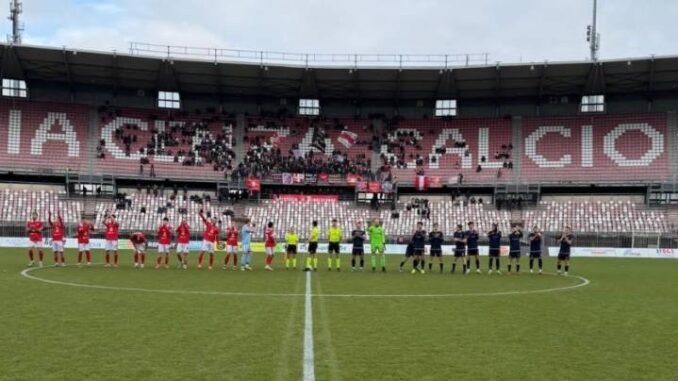 20′ Calcio d’angolo per il Piacenza, lo batte D’Agostino. Colpo di testa di un biancorosso, poi la palla carambola sul corpo di Martinelli, poco fortunato nella circostanza.