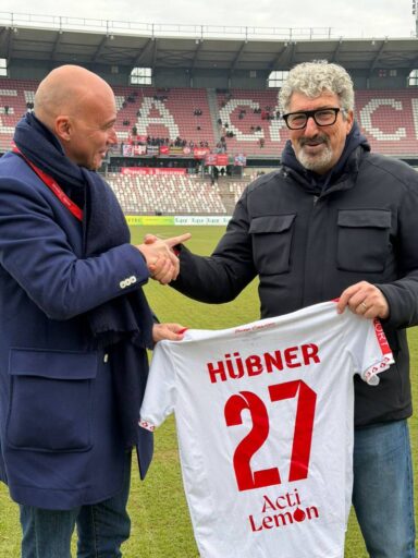 La leggenda biancorossa, ospite del Piacenza Calcio per la gara interna contro il Sant’Angelo, ha ricevuto in dono dal vicepresidente Alessandro De Santis una maglia della stagione 2025/2026