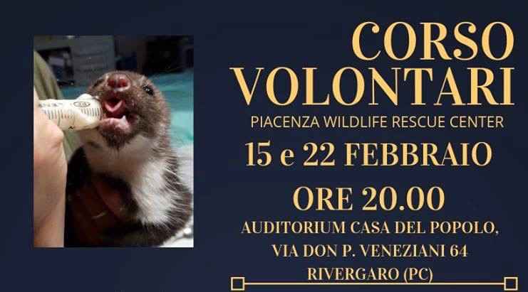 Piacenza Wildlife Rescue Center, corso per aspiranti volontari il 15 e 22 febbraio. Appuntamento alle ore 20 alla Casa del Popolo di Rivergaro.