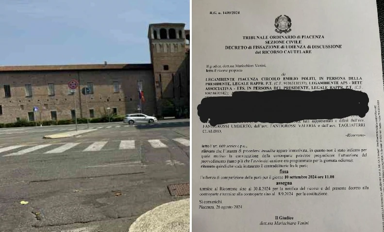 Legambiente Piacenza, Legambiente nazionale, ed alcuni abitanti residenti in Piazza Cittadella o nelle vie limitrofe, considerata la mancata considerazione di ogni altra osservazione, parere, segnalazione, esposto in merito all’inattualità del progetto del parcheggio interrato, anche tenuto conto delle alternative disponibili, hanno deciso, mediante incarico agli Avvocati Umberto Fantigrossi, Valeria Fantigrossi e Claudio Tagliaferri di presentare un ricorso ex art. 700 codice di procedura civile al Tribunale di Piacenza.