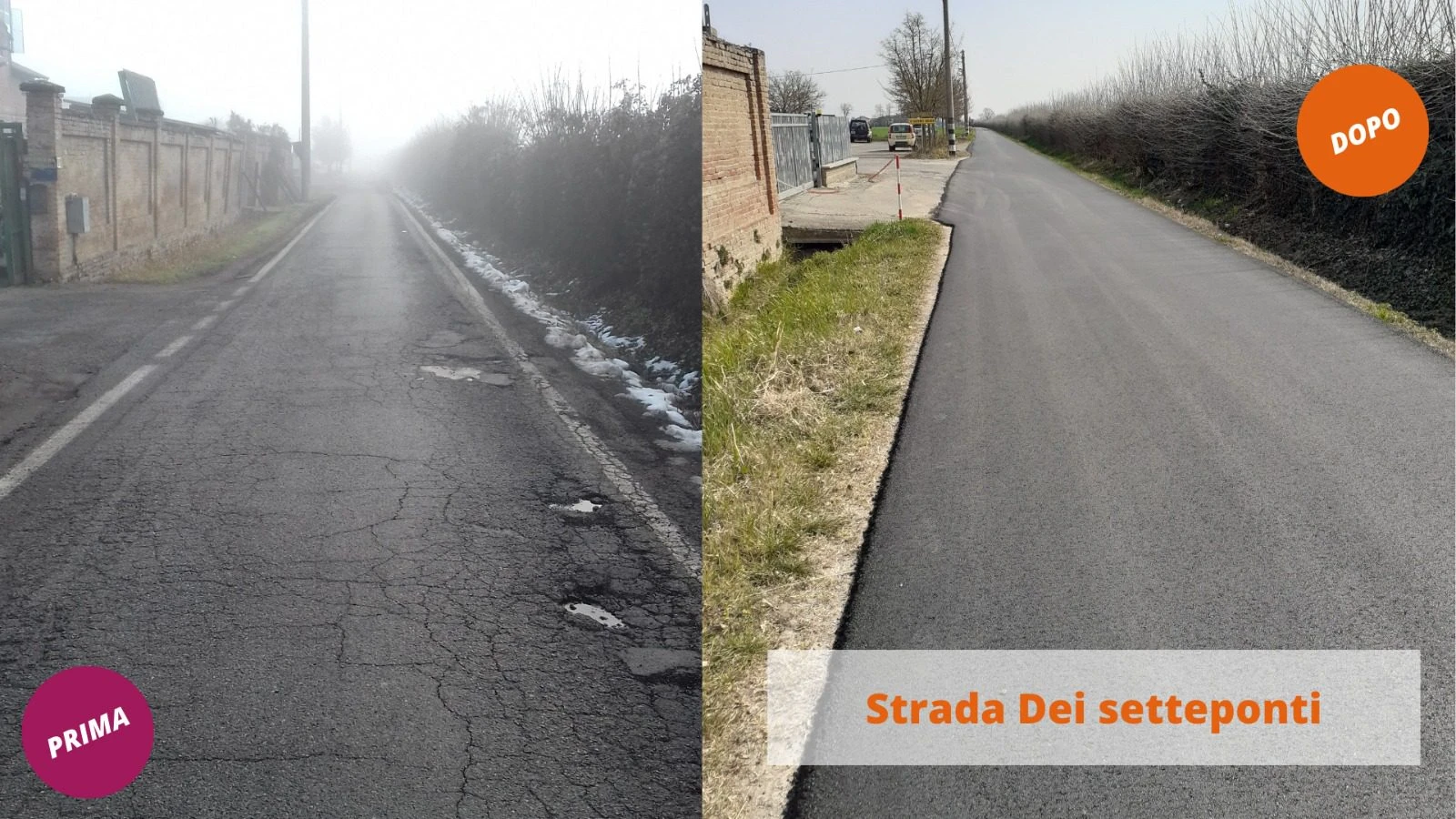 I lavori hanno riguardato il rifacimento del tappeto d’usura di via Galileo Galilei, nel centro abitato di Pittolo, da via Leonardi fino alla nuova rotatoria della Statale 45 per una lunghezza di circa 970 metri; la sistemazione di un tratto di strade dei Setteponti, nei pressi dell’intersezione con la strada provinciale di Gossolengo, per una lunghezza di circa 700 metri e, infine, la riqualificazione di strada comunale di Pittolo, nei pressi dell’intersezione con la strada della Lovina, fino al centro abitato, per una lunghezza di circa 720 metri.