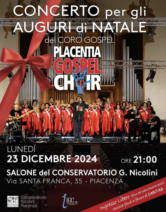 Gli auguri del Conservatorio con il Placentia Gospel Choir. L’evento è in programma il 23 dicembre alle ore 21.