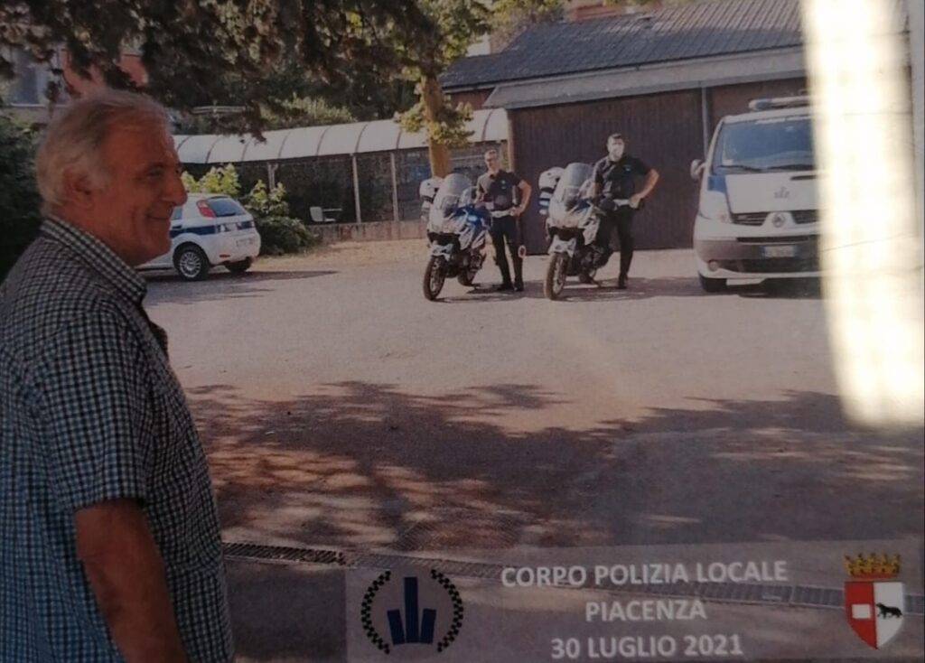 I suoi compagni di lavoro hanno voluto tributargli un caloroso saluto accogliendolo, all’ingresso del Comando di via Rogerio, con un lungo applauso accompagnato da alcuni squillanti colpi di sirena e dalla luce degli abbaglianti. A rivolgergli il più sentito “grazie” erano presenti il Commissario superiore Giuseppe Addabbo, il Comandante dell’Unione Val Nure Paolo Giovannini e tanti colleghi, molti anche tra quelli trasferitisi nel tempo nei Comandi della provincia. Il Commissario superiore Addabbo ha salutato il collega evidenziandone le doti umane e professionali dimostrate nei suoi quarant’anni al servizio della Polizia Locale di Piacenza, ricordando in particolare la sua disponibilità a essere sempre presente quando necessario anche al di fuori dell’orario di servizio.