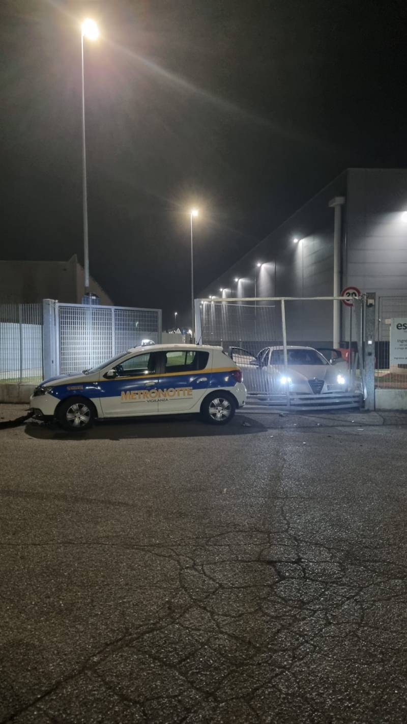 I malviventi hanno utilizzato alcuni furgoni rubati, posizionandoli di traverso sulla carreggiata della Statale 412 per bloccare il traffico e isolare l’area. Nel frattempo, altri complici avrebbero tentato di introdursi in un magazzino situato nelle vicinanze. Il piano, però, si è interrotto con l’arrivo di una pattuglia di Metronotte Vigilanza, che ha reagito prontamente all’allarme.