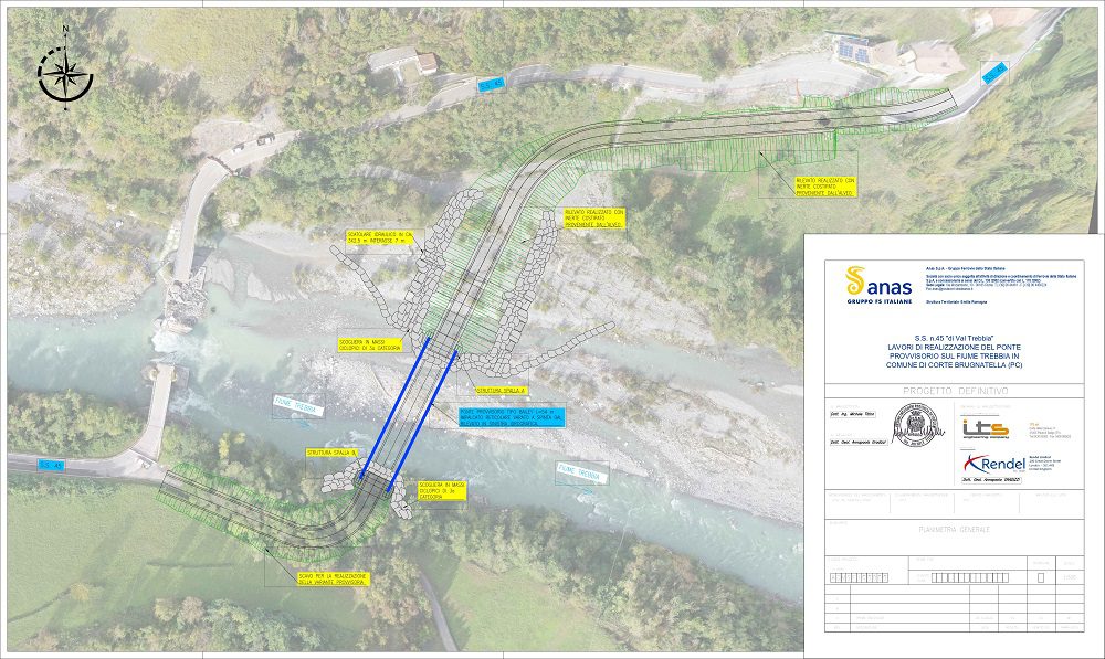 Crollo del ponte Lenzino. Anas realizzerà il ponte provvisorio sul fiume Trebbia tramite imprese contrattualizzate con accordo quadro in 6 mesi. Nel dettaglio: un mese per la progettazione e acquisizione di pareri/condivisione del progetto con gli enti interessati; 5 mesi per la realizzazione delle fondazioni e dell’opera. Tempi dovuti anche al contesto geografico particolarmente impervio e nel corso della stagione più sfavorevole, come spiega la stessa Anas.