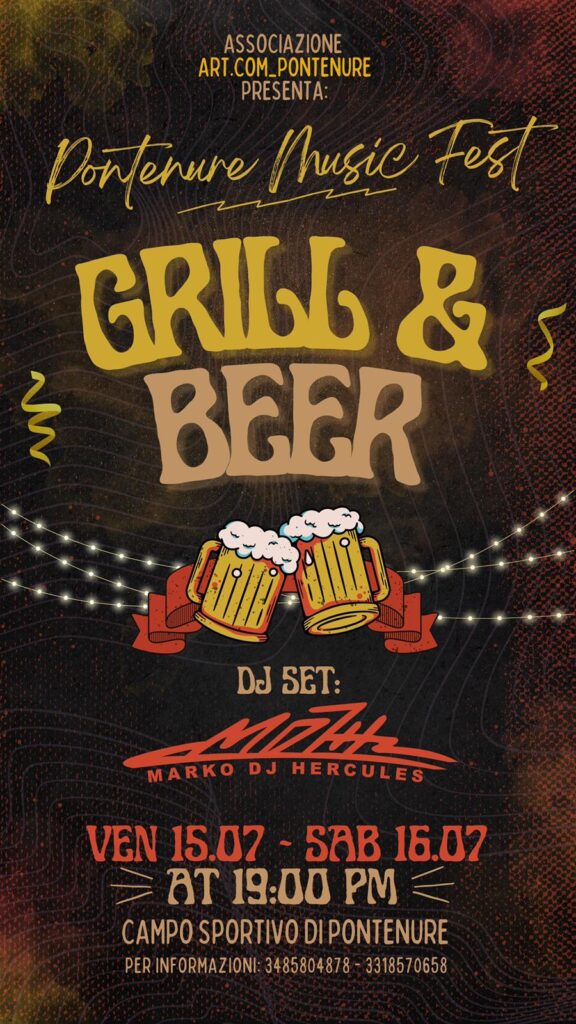 Pontenure Music Fest, Grill and Beer il 15 e 16 luglio al campo sportivo. L’evento proposto dall’ Associazione Artigiani e Commercianti di Pontenure si tiene in occasione della Fiera di San Giacomo.