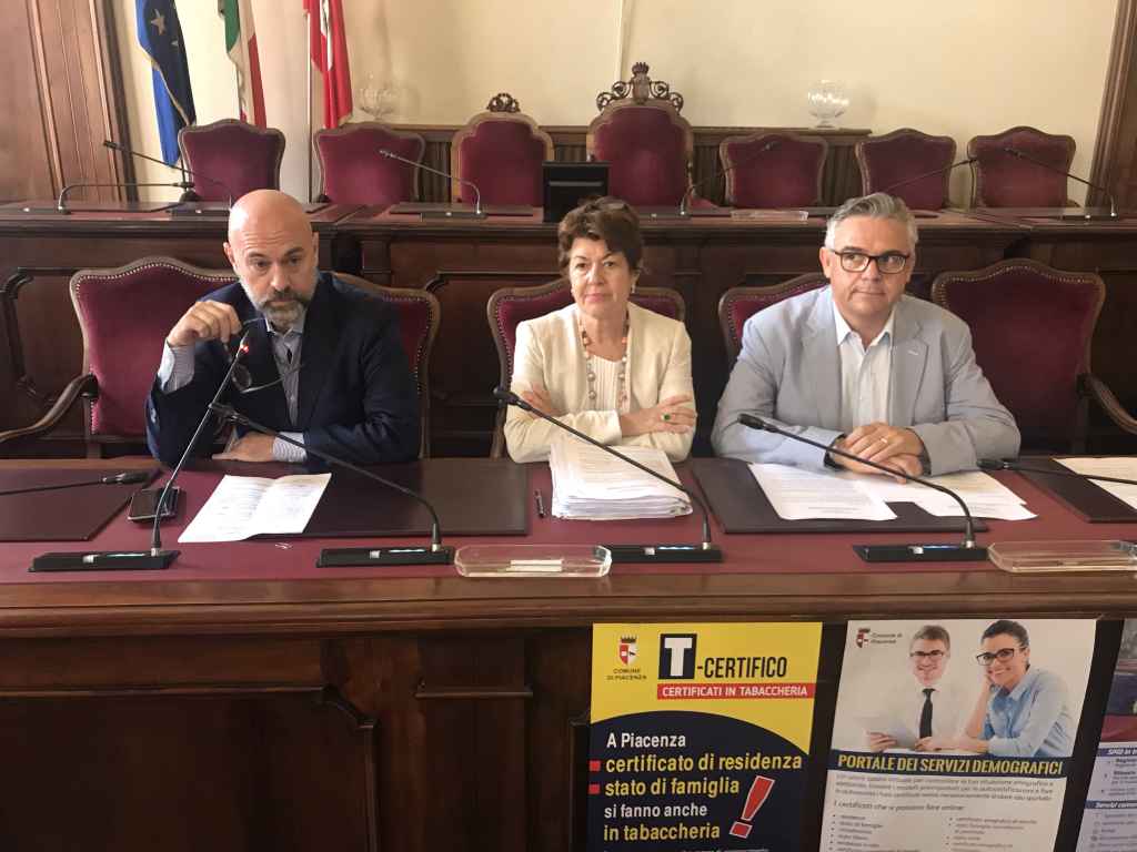 Nuovi certificati on line disponibili sul portale dei Servizi Demografici. Sono intervenuti il vice sindaco Elena Baio, l’assessore ai Servizi al Cittadino Paolo Mancioppi e il direttore generale del Comune di Piacenza, Roberto Gerardi.