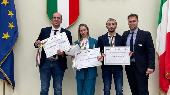 Domenica 17 dicembre a Roma, al Salone d’Onore del Coni sono stati premiati Massimiliano Cremona, Davide Scarpa, Martina Barbarini e per la sezione radiocomandata Ivan Ronconi, Andrea Turrini e Giorgio Scognamiglio in occasione del centenario della Motonautica.