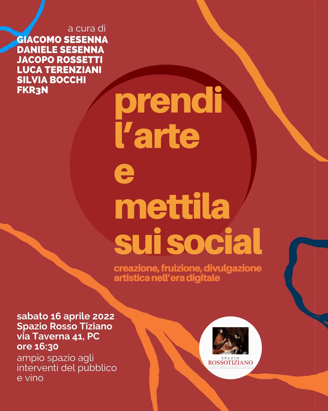 Come si rapporta al mondo digitale chi gestisce uno spazio culturale? E quale futuro per uno spazio come Rosso Tiziano? I social network sono utili a un giovane artista emergente? E gli influencer sono utili ai musei? Come fare divulgazione artistica sui social ad un pubblico non esperto? Si può promuovere efficacemente il patrimonio piacentino in rete? Sono alcune delle domande a cui si tenterà, assieme al pubblico, di dare risposta. Ampio spazio agli interventi (e al vino offerto da noi).