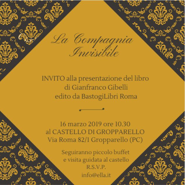 Il 16 marzo 2019 alle 10.30 sarà presentato il romanzo autobiografico “La Compagnia Invisibile” di Gianfranco G. Gibelli (Bastogi Libri Editore-Roma).