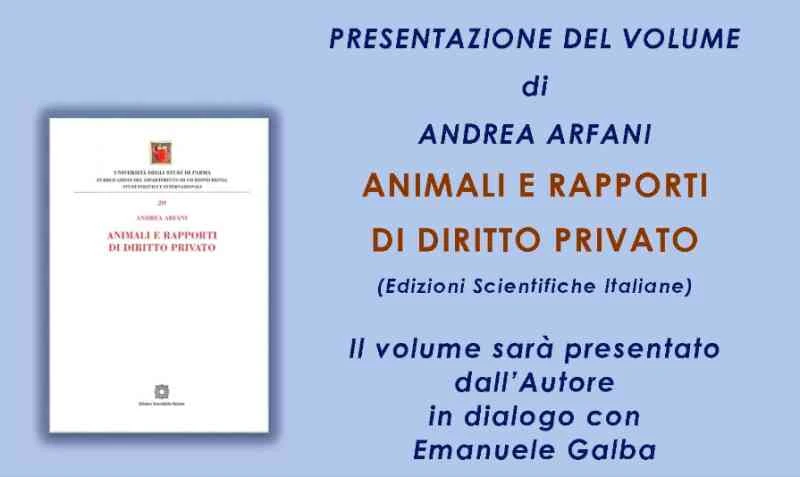 Lunedì 13 maggio, alle 18, al PalabancaEventi di via Mazzini (Sala Panini), nuova iniziativa culturale della Banca di Piacenza con la presentazione del volume “Animali e rapporti di diritto privato” di Andrea Arfani. Una pubblicazione del Dipartimento di Giurisprudenza (Studi politici e internazionali) dell’Università di Parma (Edizioni Scientifiche Italiane). Il libro sarà illustrato dall’autore in dialogo con il giornalista Emanuele Galba.