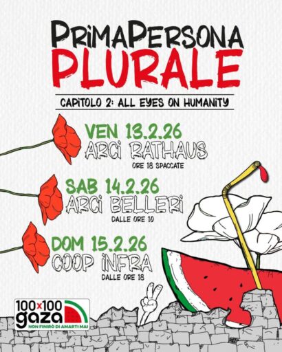 “PrimaPersona Plurale: All Eyes on Humanity” torna dal 13 al 15 febbraio con tre giornate di incontri e partecipazione, abbracciando la campagna solidale 100×100 Gaza, iniziava nazionale che a Piacenza promuoviamo in collaborazione con From the River to PC, i circoli Arci Rathaus e Belleri, Coop Infrangibile, l’impresa formava Stampone.