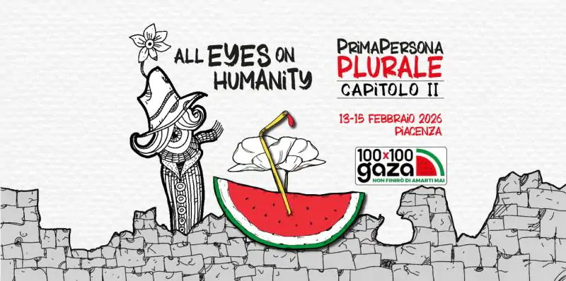 “PrimaPersona Plurale: All Eyes on Humanity” torna dal 13 al 15 febbraio con tre giornate di incontri e partecipazione, abbracciando la campagna solidale 100×100 Gaza, iniziava nazionale che a Piacenza promuoviamo in collaborazione con From the River to PC, i circoli Arci Rathaus e Belleri, Coop Infrangibile, l’impresa formava Stampone.