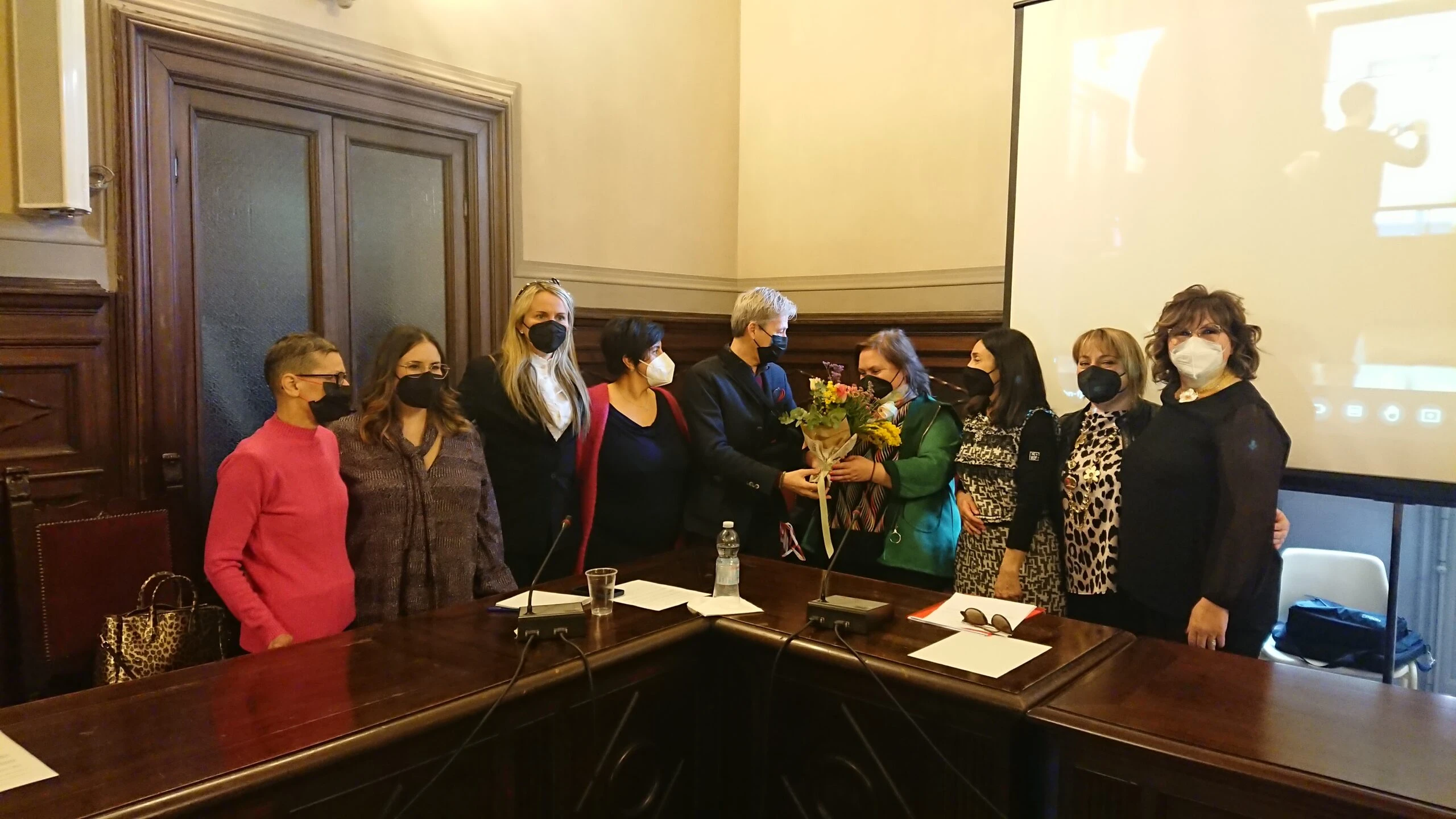 Nella foto da sinistra: Laura Lusignani rappresentante dell’artigianato in seno al Comitato, Elisa Tatano dell’Industria, Federica Bussandri dell’artigianato, Katia Baldrighi del commercio, Filippo Cella Commissario Straordinario della Camera di commercio, Mara Rai, Nicoletta Corvi Presidente del Comitato, Giovanna Malvicini rappresentante del commercio e Giuliana Biagiotti del credito.