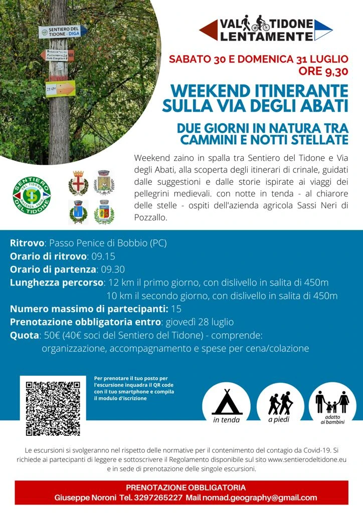 Proseguono gli appuntamenti “Weekend zaino in spalla”, escursioni a piedi estive di più giorni che rientrano nel circuito “Val Tidone Lentamente”, organizzate dalla guida escursionistica ambientale AIGAE Giuseppe Noroni: “Weekend itinerante sulla Via degli Abati – Due giorni in natura tra cammini e notti stellate”, si terrà sabato e domenica prossima e avrà come luogo di ritrovo e arrivo Passo Penice di Bobbio.
