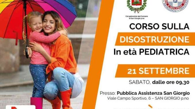 Sabato 21 settembre alle 9.30 alla vostra sede è in programma il corso sulla disostruzione in età pediatrica