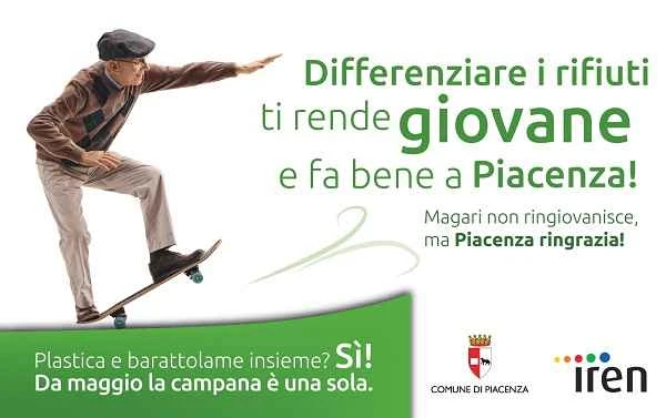 “Differenziare i rifiuti ti rende giovane e fa bene a Piacenza. Magari non ringiovanisce, ma Piacenza ringrazia!”: questo è il messaggio della nuova campagna di comunicazione promossa dal Comune di Piacenza ed Iren, centrato sulla sensibilizzazione alla raccolta differenziata.