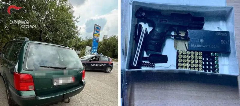 Durante la perquisizione personale e veicolare, i carabinieri di Rivergaro rinvenivano e sottoponevano a sequestro due giubbotti neri con cappuccio, simili a quelli descritti dalla vittima, tre paia di guanti da lavoro, cacciaviti e una pinza, verosimilmente utilizzati per effrazioni e una pistola a salve priva del tappo rosso con relative munizioni, ben occultata all’interno di un kit di pronto soccorso.