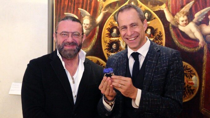 Una cerimonia breve ma ricca di contenuti, quella cha ha avuto luogo stamani a Palazzo Farnese nella Sala del Plastico. Presenti l’assessore alla Cultura Christian Fiazza e Rayan Lynch, orafo piacentino che ha voluto donare ai Musei Civici un bracciale in oro e lapislazzuli afgani blu, che simboleggia la storia della famiglia Farnese e della vignolesca mole: “E’ mio desiderio donare questo lavoro alla comunità”, ha detto Lynch, spiegando che “si tratta di un’opera costituita da quindici anelli che rappresentano i personaggi all’interno del giglio farnesiano con una piccola sfera alla base che simboleggia Papa Paolo III Farnese. Ho voluto lasciare incompiuto il grande lapislazzulo afgano, proprio come Palazzo Farnese, con solo tre facce levigate che simboleggiano i tre petali del giglio. Insomma, un lavoro che mi ha dato soddisfazione e che ho realizzato con tanta passione perché voglio che resti a futura memoria in queste splendide sale”. Lynch, che è il nome d’arte di Massimiliano Cremonini, interpreta l’arte orafa seguendo le tecniche del cesello e del filo ritorto utilizzato in laboratorio e molti suoi gioielli sono caratterizzati da una forte matrice bizantina.